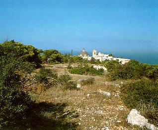 Vom Gipfel des Berges, der sich 482 m über dem Meer erhebt, weitet sich der Blick zur Ebene Esdrelon. Sie ist bekannt als el-Muhraqa. Hier erbauten die Unbeschuhten Karmeliten im Jahr 1883 ein kleines, dem Propheten Elija geweihtes Heiligtum. Es steht in der Nähe jener Stelle, an der nach der Überlieferung das Opfer des Elija stattgefunden hat und wo - wie 1 Kön 18,20-40 berichtet - die Baalspropheten umgebracht wurden. Verschiedene kleine Täler führen vom Bergkamm hinunter zum Mittelmeer. In einem dieser Täler, im Wadi´ ain es-Siah, 4 km von Haifa entfernt, gründeten einige lateinische Eremiten nach dem dritten Kreuzzug (1187 - 1192) ihre Einsiedelei.